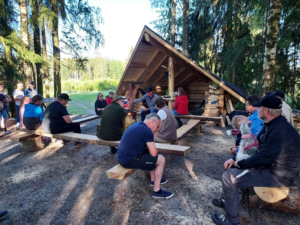 Kokousväkeä uuden laavulla kesäkuussa 2021