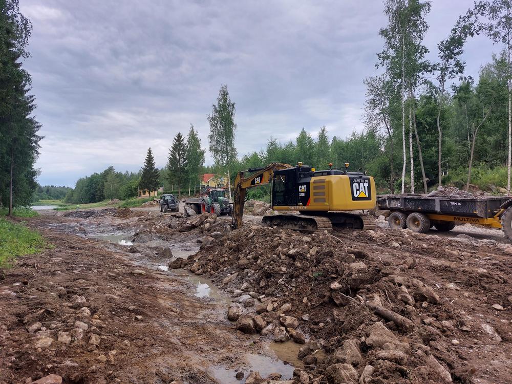Kiveämistalkoot ennallistettavalla uomalla heinäkuussa 2021